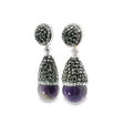 Amethyst Dangle Earrings - Amethyst Sphere Below Reverse Cone of Marcasite & Silver Swarovski Crystals with 925 Sterling Silver