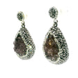 Amethyst Druze Dangle Earrings - Pear-shaped Druze with Marcasite & Silver Swarovski Crystals with 925 Sterling Silver