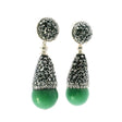Aventurine Dangle Earrings - Aventurine Sphere Below Reverse Cone of Marcasite & Silver Swarovski Crystals with 925 Sterling Silver
