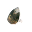 Discover natural elegance with our Moss Agate Ring, featuring a captivating pear-shaped cabochon. The stone showcases delicate green inclusions at its center, reminiscent of a tranquil forest, beautifully contrasted by pure white agate near the top. Expertly bezel-set in minimalist 925 sterling silver, this adjustable ring combines comfort with timeless style.