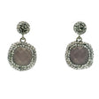 Rose Quartz Dangle Earrings - Faceted Rounded Square with Marcasite & Silver Swarovski Crystals in 925 Sterling Silver