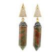 Unakite Dangle Earrings - Point Lantern Set with Gold Swarovski Crystals & Marcasite Hanging from Triangle with Gold Vermeil in 925 Sterling Silver
