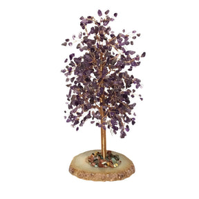 10" Amethyst Copper Wire Beaded Tree on Agate Slice Base - Large