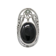 Black Onyx Ring - Oval Cabochon with Faceted Round Prasiloite