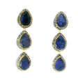 Elevate your elegance with these Blue Sapphire dangle earrings, featuring three expertly faceted pear-shaped stones. Accented by delicate marcasite and shimmering gold Swarovski crystals, each earring is finished with a refined gold overlay for a timeless, sophisticated look. Perfect for adding a touch of luxury to any ensemble.