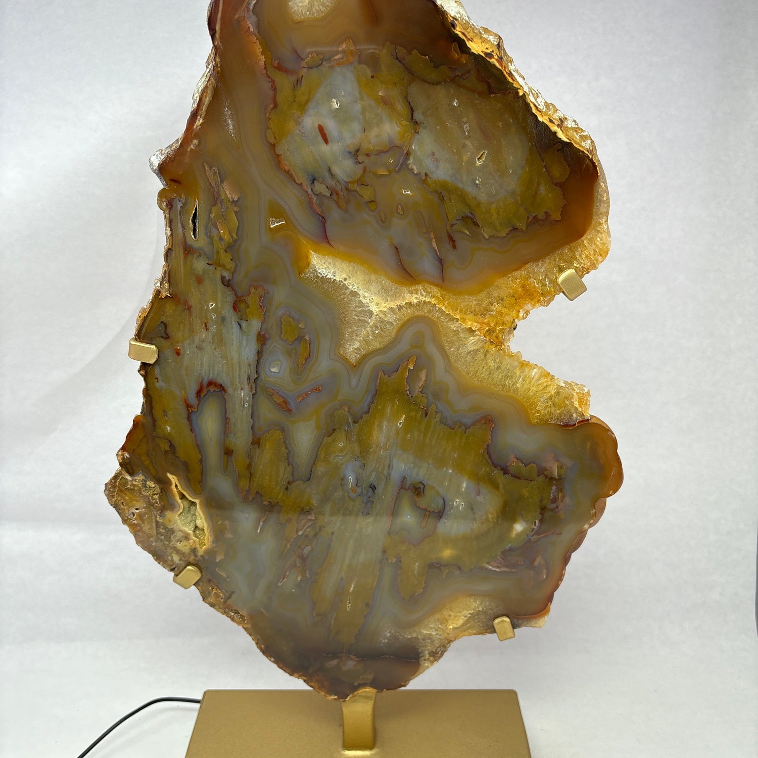 Carnelian Agate Slice On Illuminated Table Stand - Gold Rectangle is backordered and will ship as soon as it is back in stock.