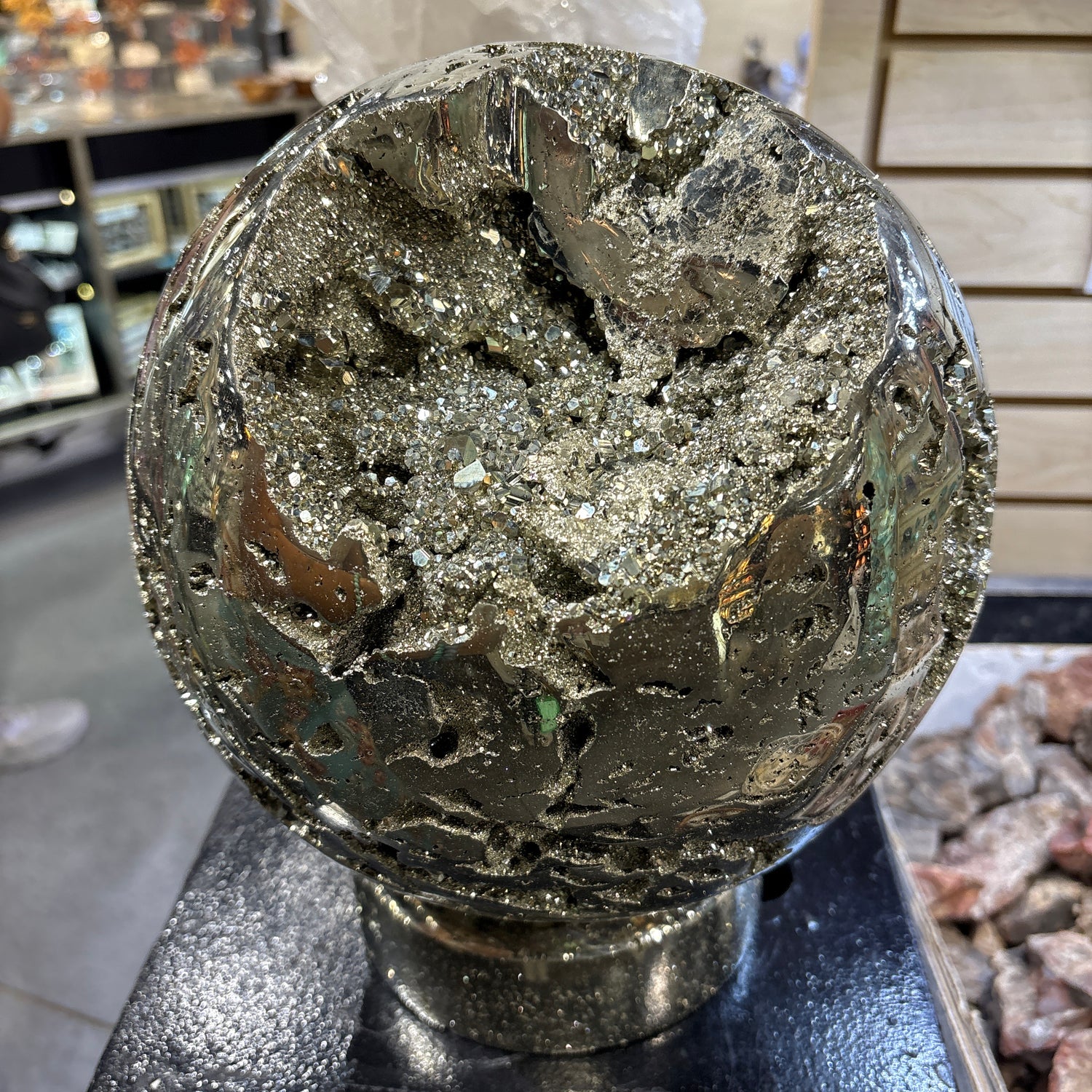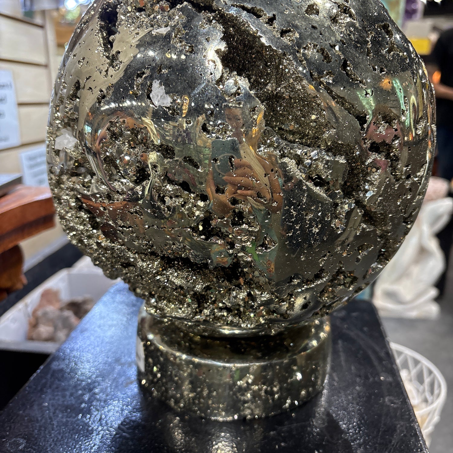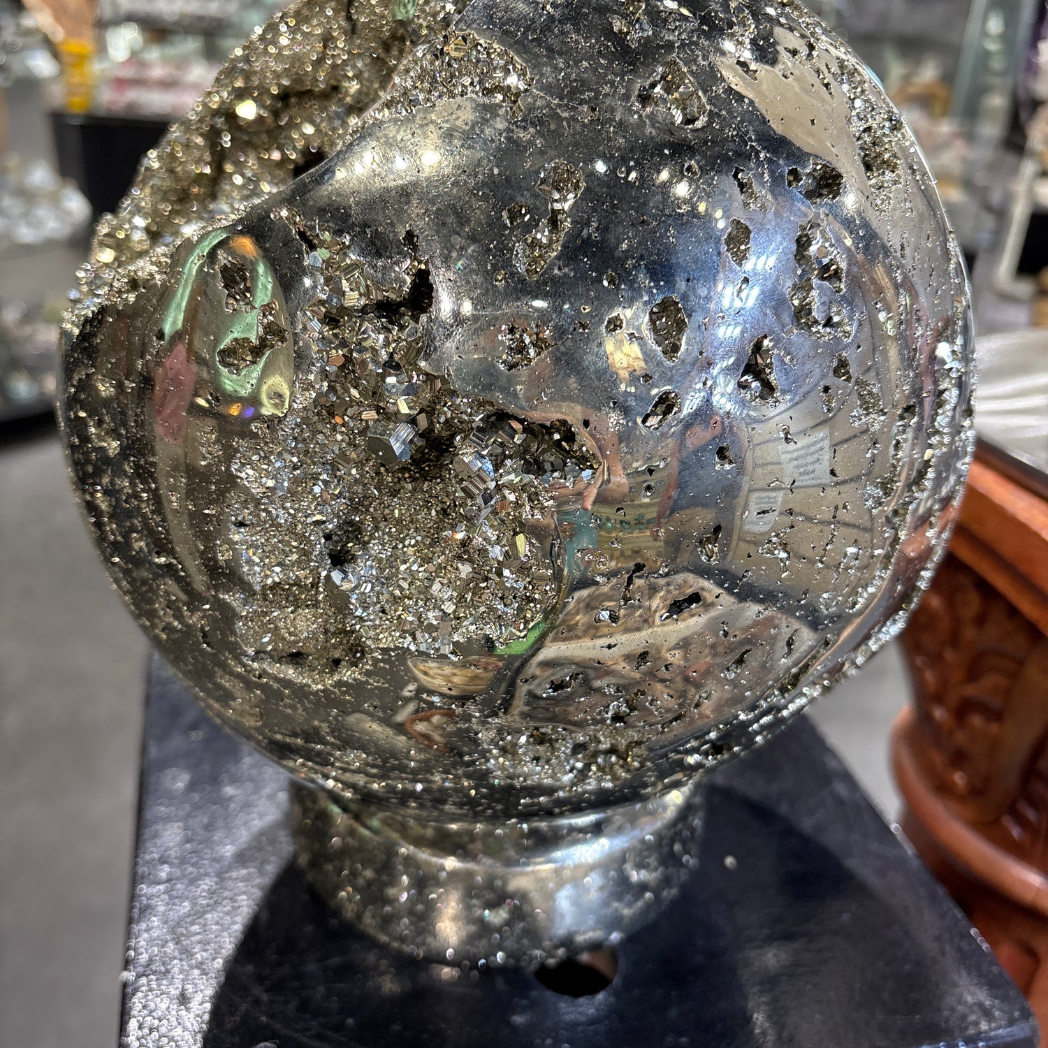 "Death Starr" Peruvian Pyrite Sphere with Accompanying Pyrite Stand