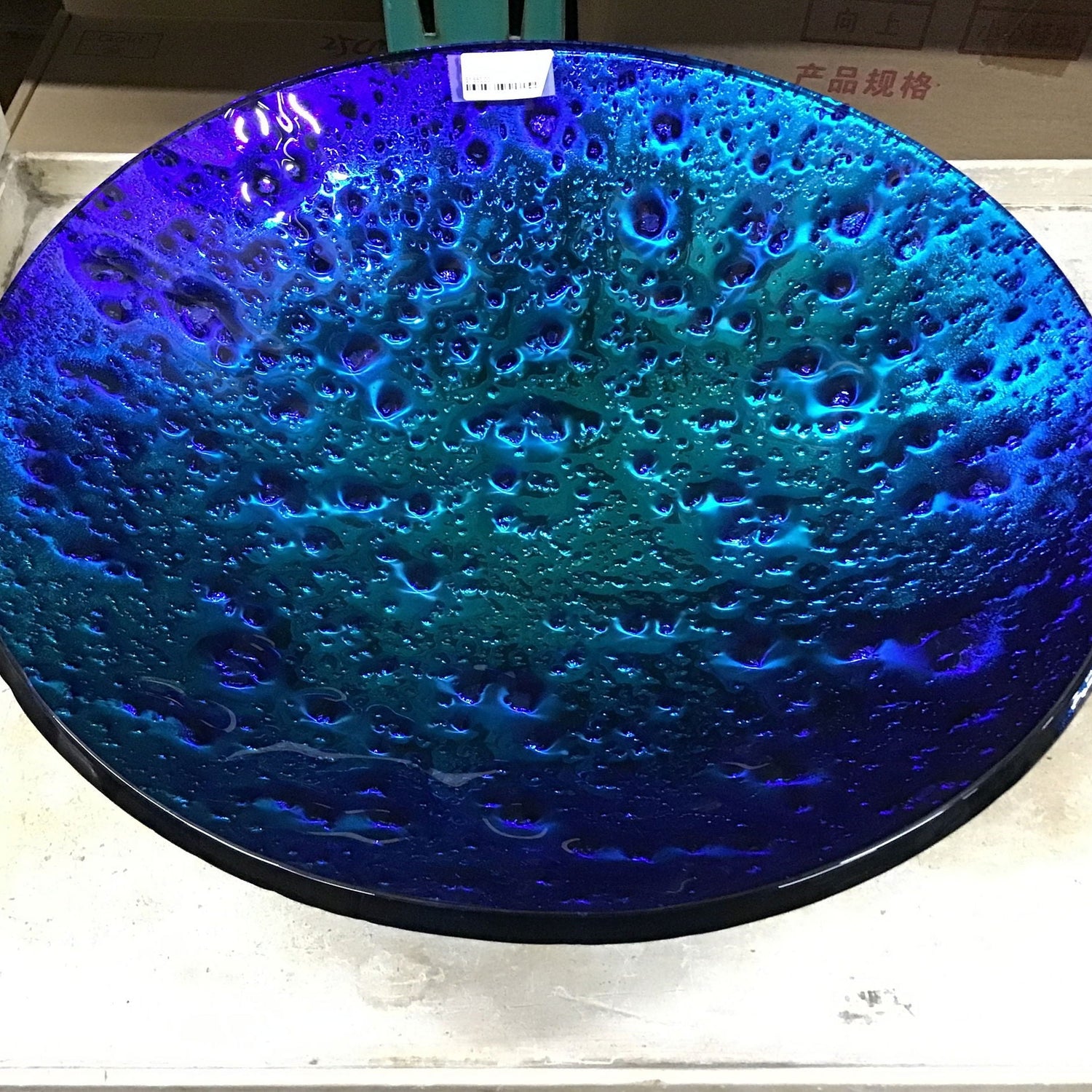 Dichroic Glass Round Vessel - Green & Blue