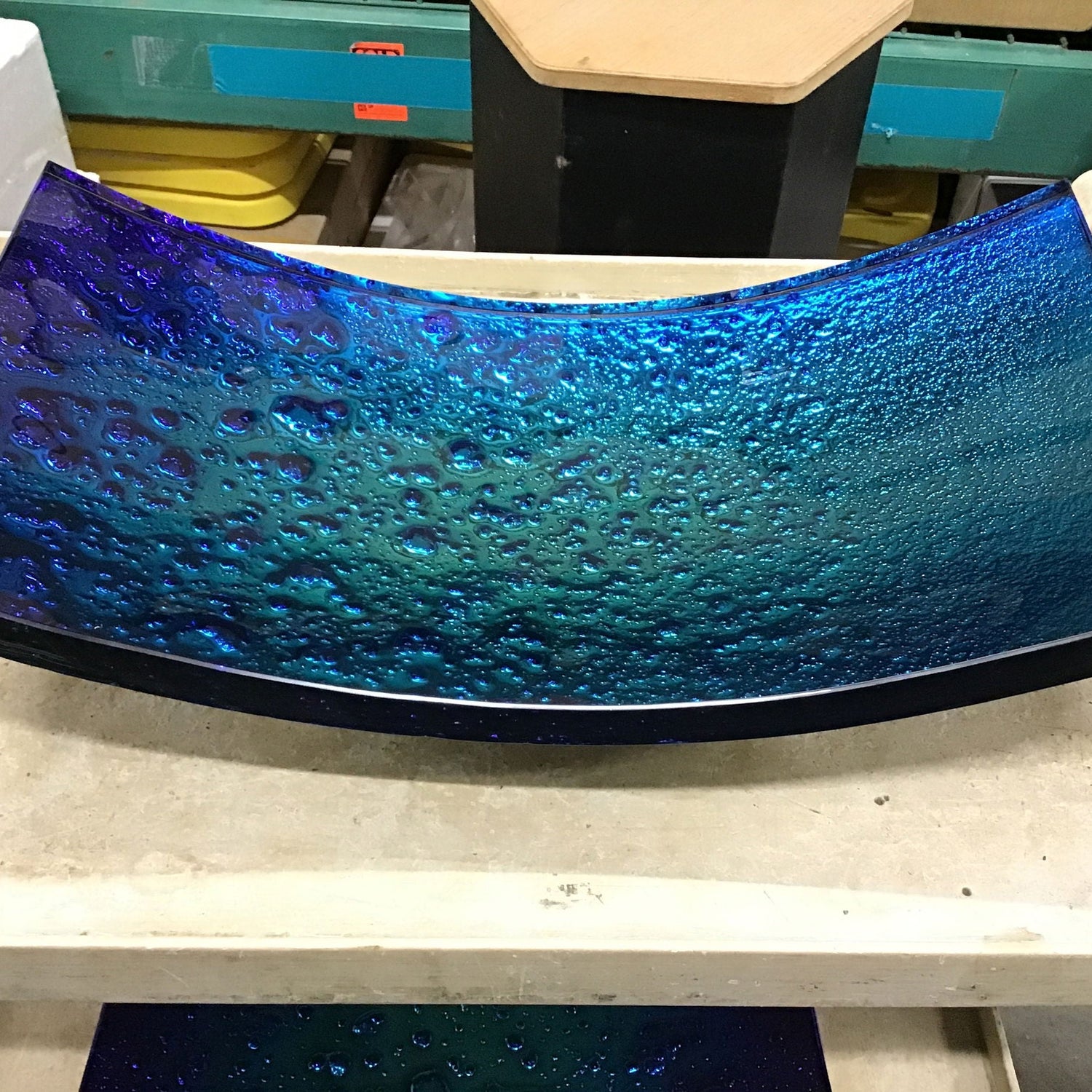 Dichroic Glass Table Top Vessel - Curve Blue & Green