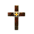 Dinosaur Bone Fossil Cross Pendant With Black And Yellow Sapphires In Center