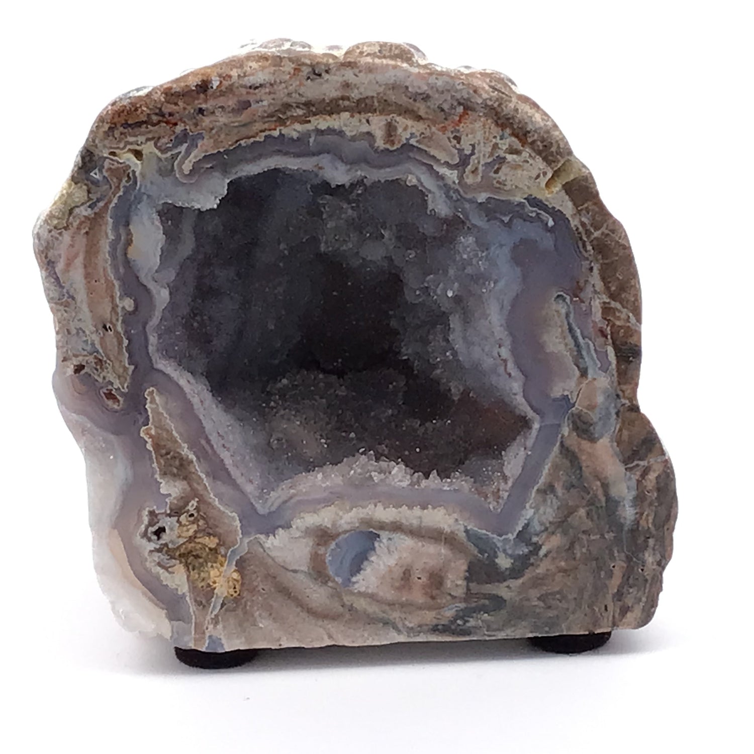 Discover double the magic with this Dugway Geode featuring Periwinkle Druze and an Extra Hidden Pocket! The delicate lavender-blue crystals create a soft, dreamy aesthetic while the surprise secondary pocket underneath adds an element of intrigue and bonus sparkle. This unique specimen from Utah's Dugway Mountains showcases nature's complexity and the joy of hidden treasures. The cut and felted base provides stable display while allowing exploration of both crystal pockets. Perfect for collectors who love specimens with secrets to reveal and the soothing, uncommon beauty of periwinkle-toned minerals!