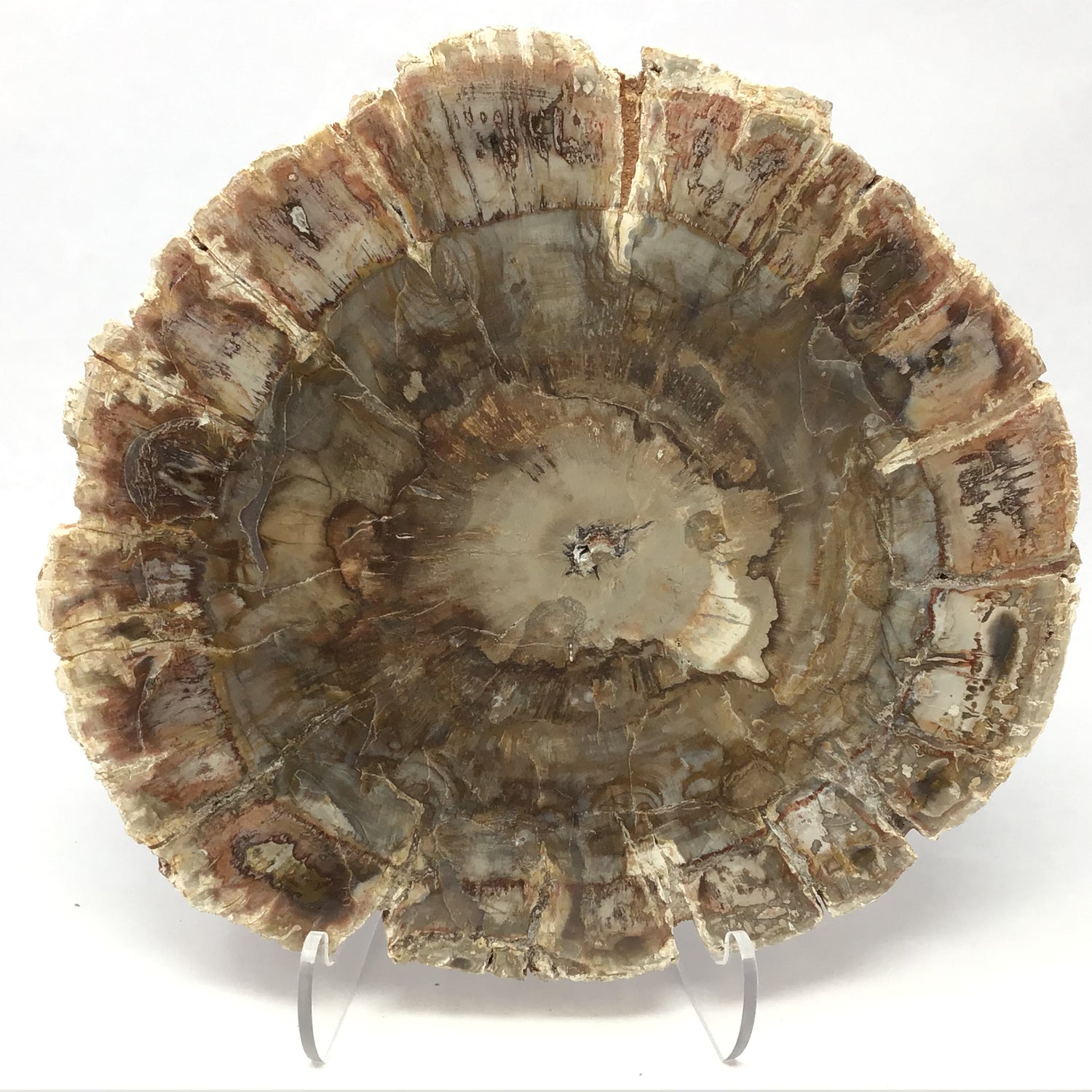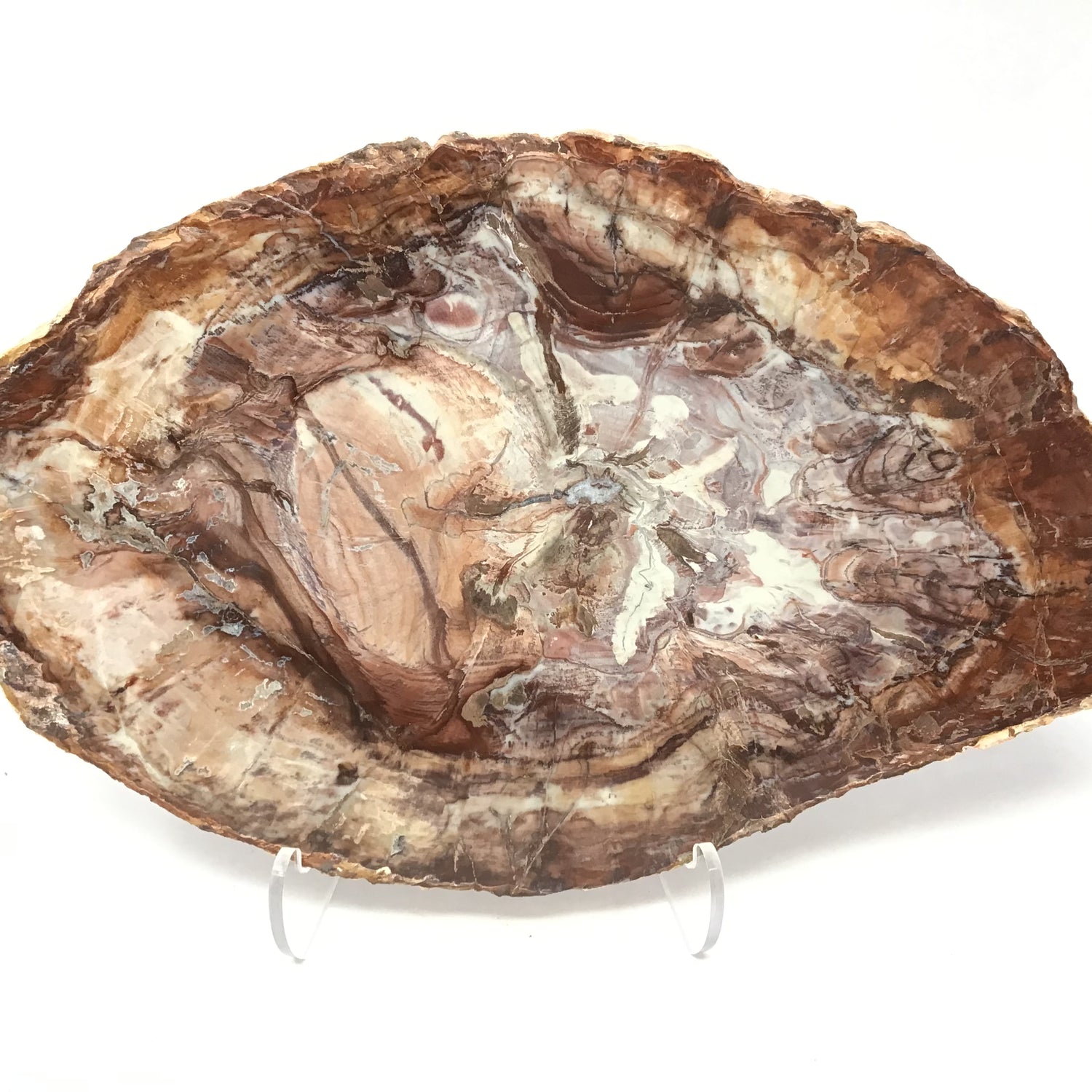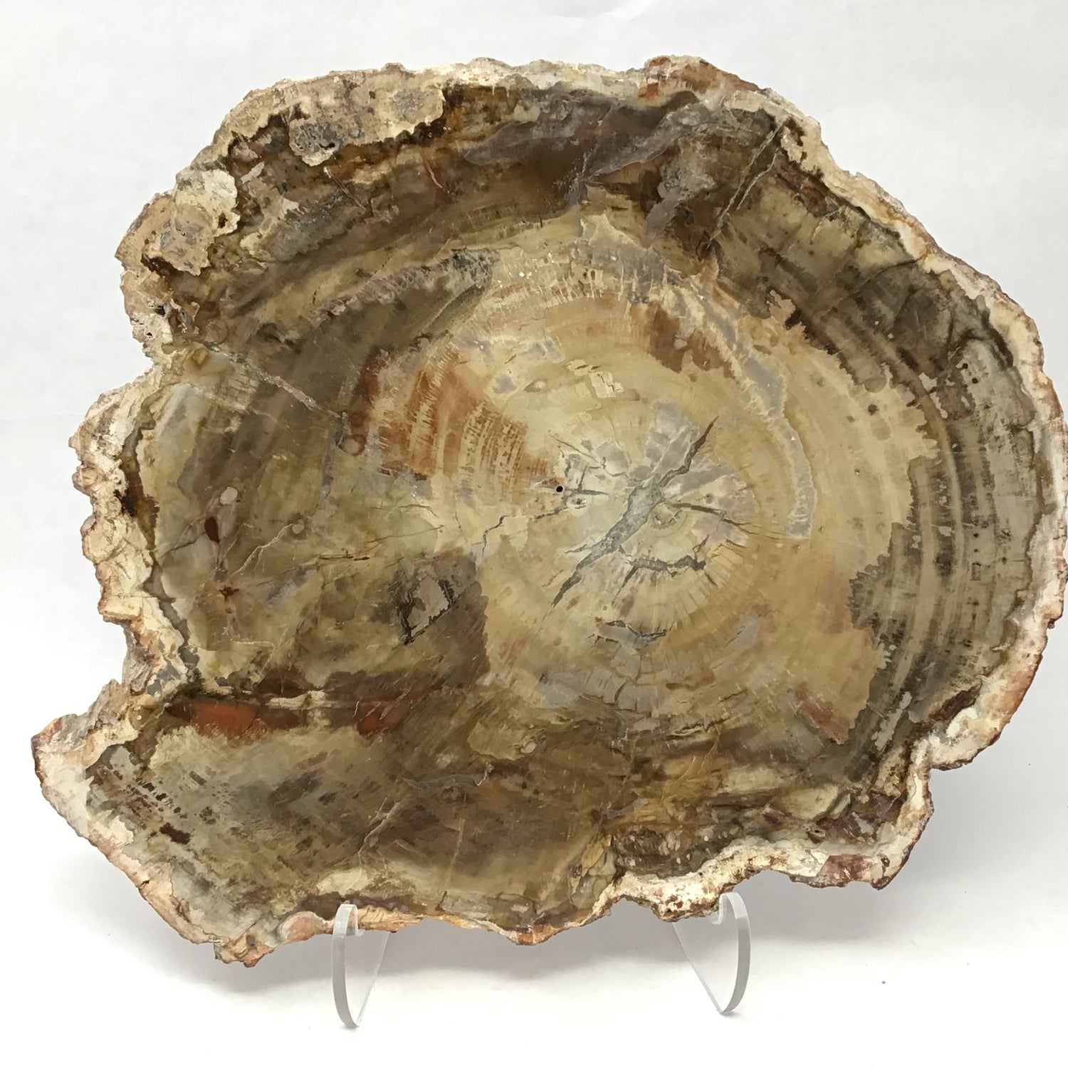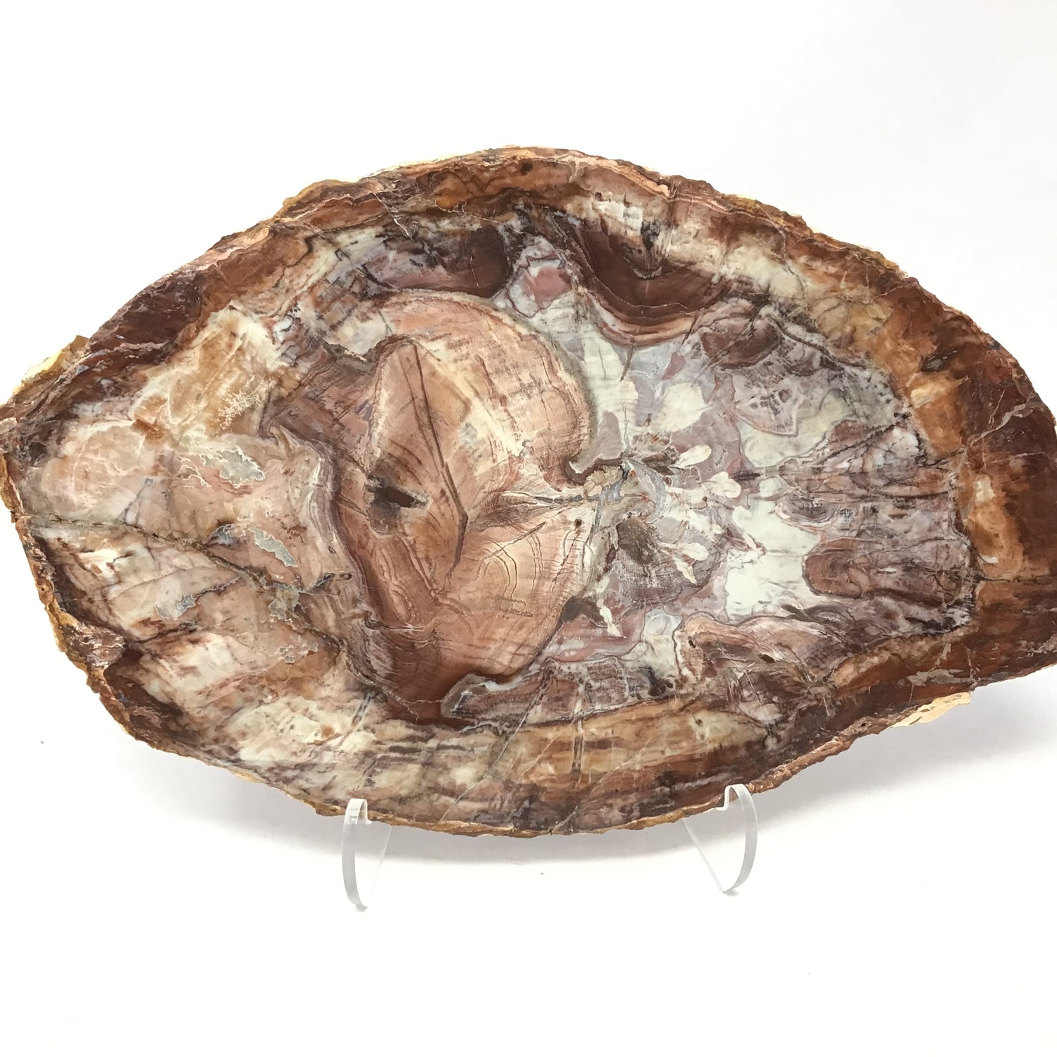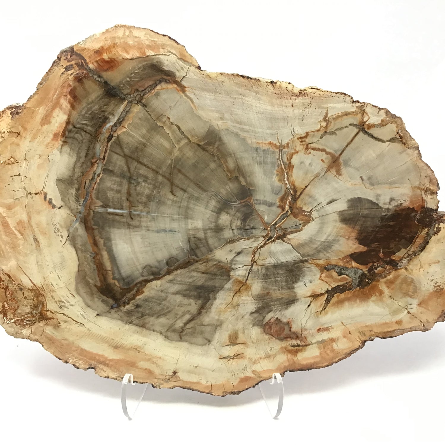 Madagascar Petrified Wood Slice with Natural Bark Edge - Medium on Lucite Easel - Pattern 2 is backordered and will ship as soon as it is back in stock.