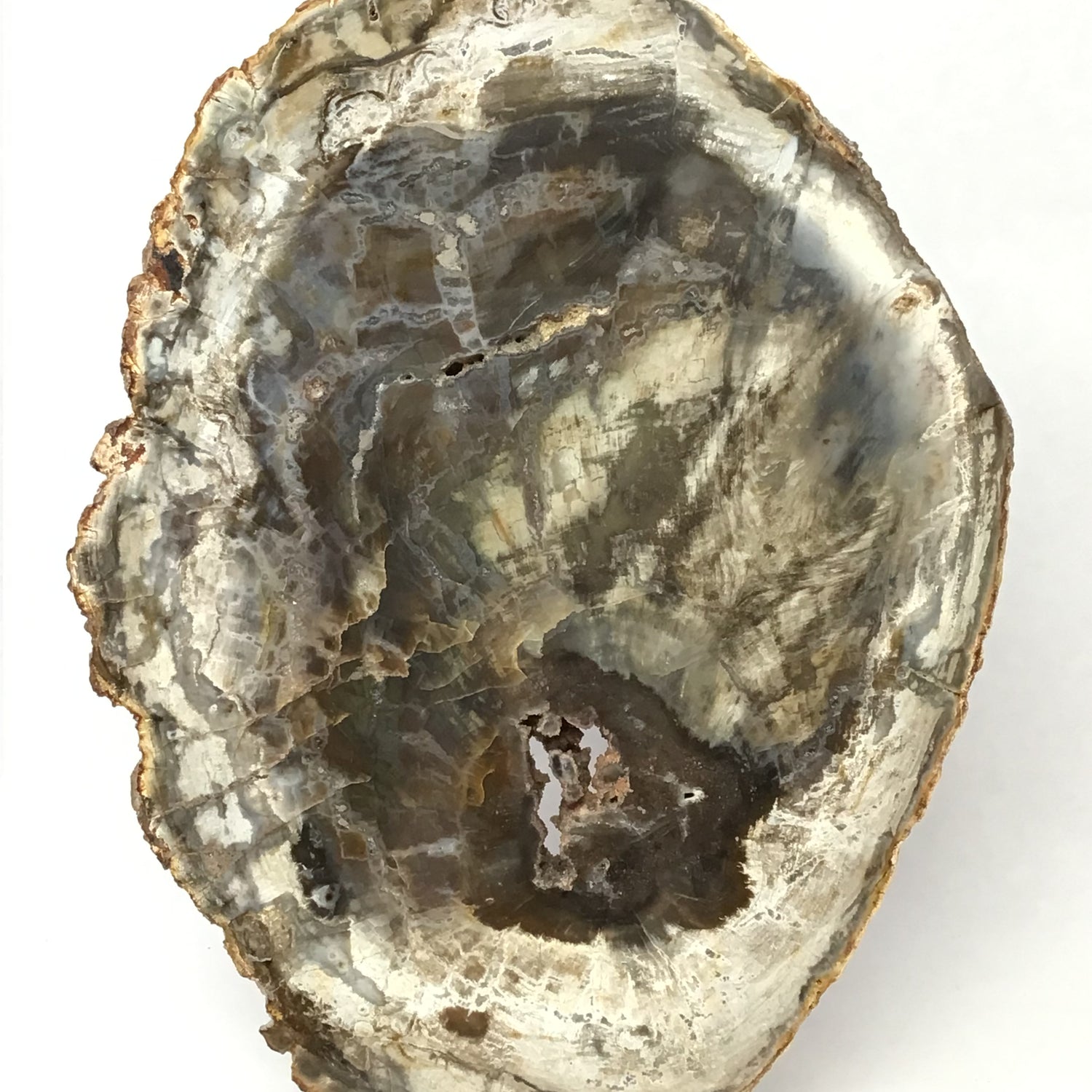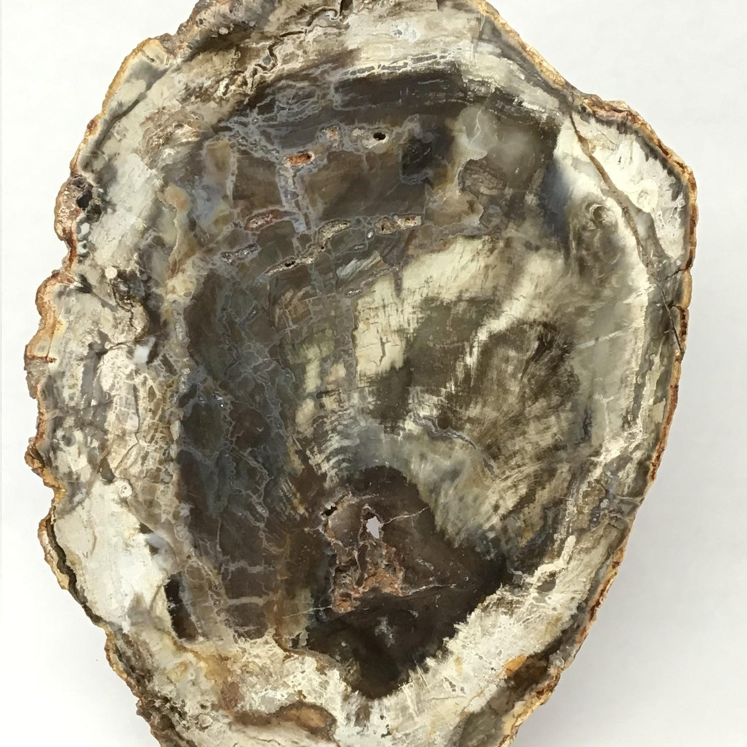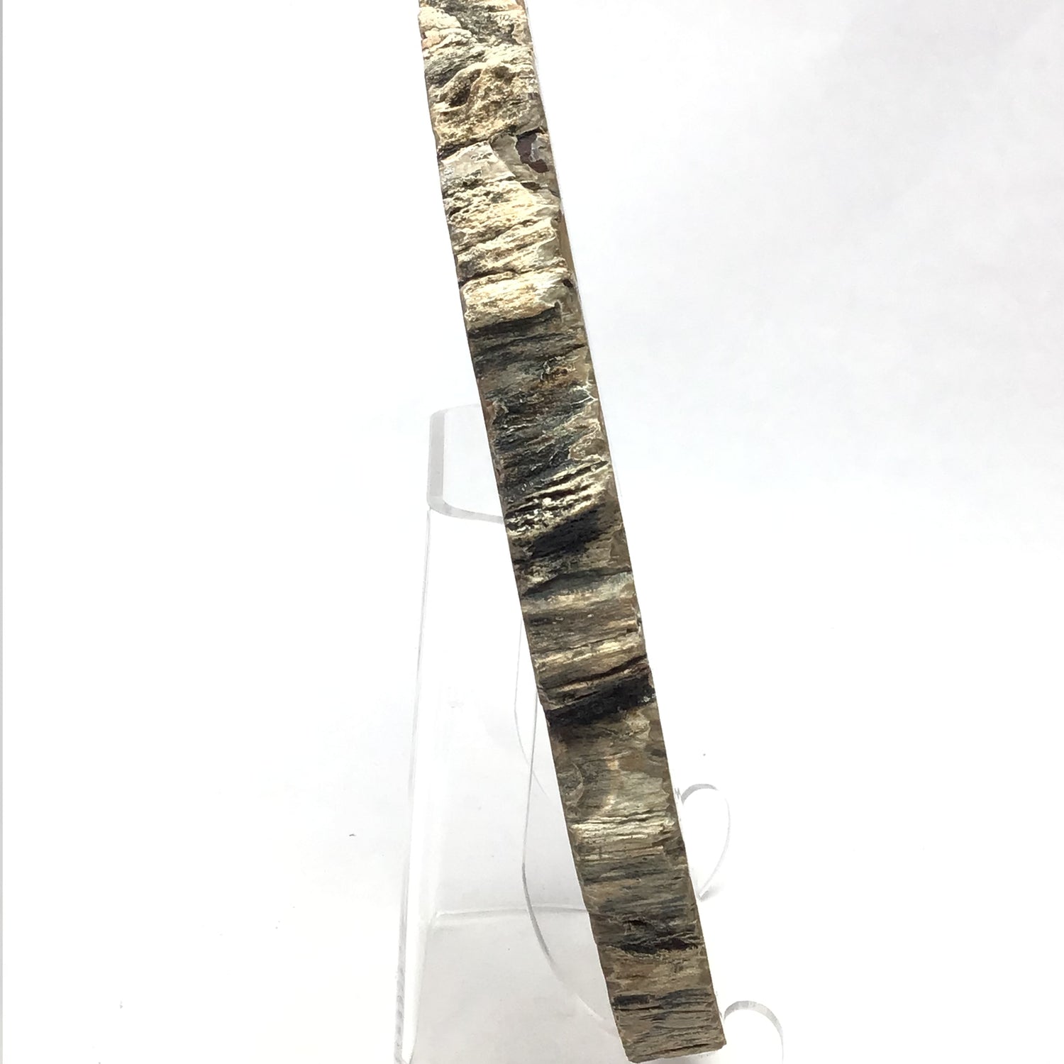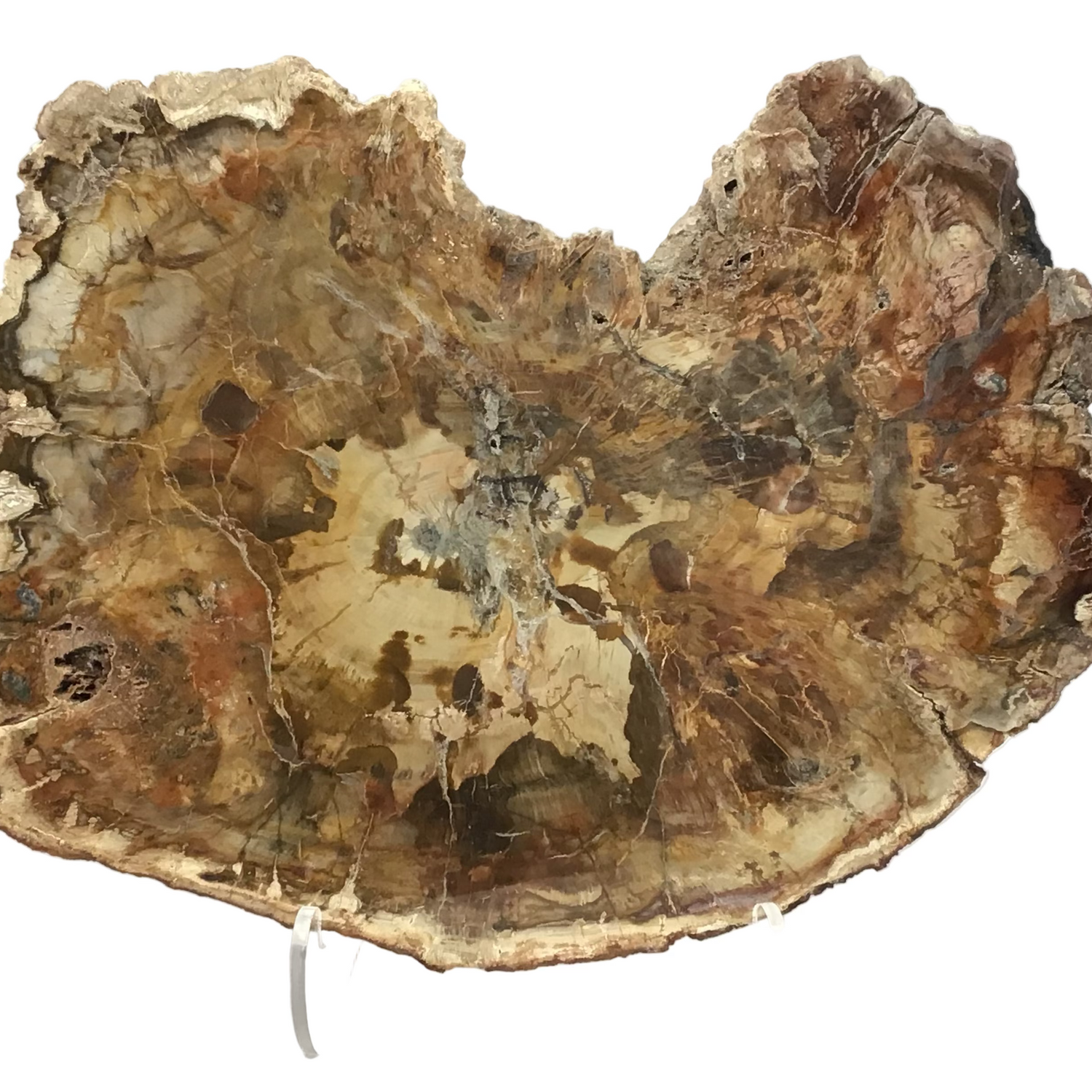 Madagascar Petrified Wood Slice with Natural Bark Edge - Medium on Lucite Easel - Pattern 2 is backordered and will ship as soon as it is back in stock.