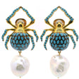 Nano Stone & Pearl Dangle Earrings - Clip-on Turquoise Spider Above Baroque Pearl in Gold Vermeil over 925 Sterling Silver