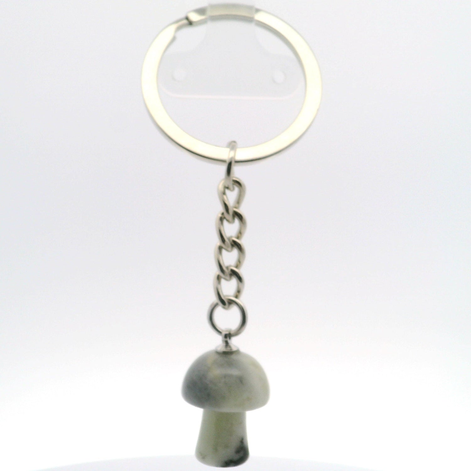 Grow your style with the Prehnite Mushroom Keychain! Carved from soothing pale green prehnite, this adorable mushroom charm brings forest magic and gentle healing energy to your everyday carry. Known as a stone of unconditional love and connection to nature, prehnite's soft translucent green tones evoke mossy glades and peaceful gardens. Lightweight and durable, it keeps your keys organized while the smooth polished finish feels wonderful to touch. Perfect for crystal enthusiasts and woodland lovers who want a practical, pocket-sized reminder of nature's calming beauty and mushroom magic!