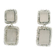 Selenite Dangle Earrings - 2 Rectangles Surrounded by Rows of Silver Swarovski Crystals in 925 Sterling Silver