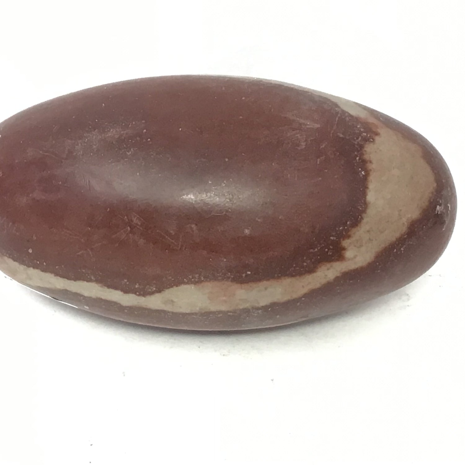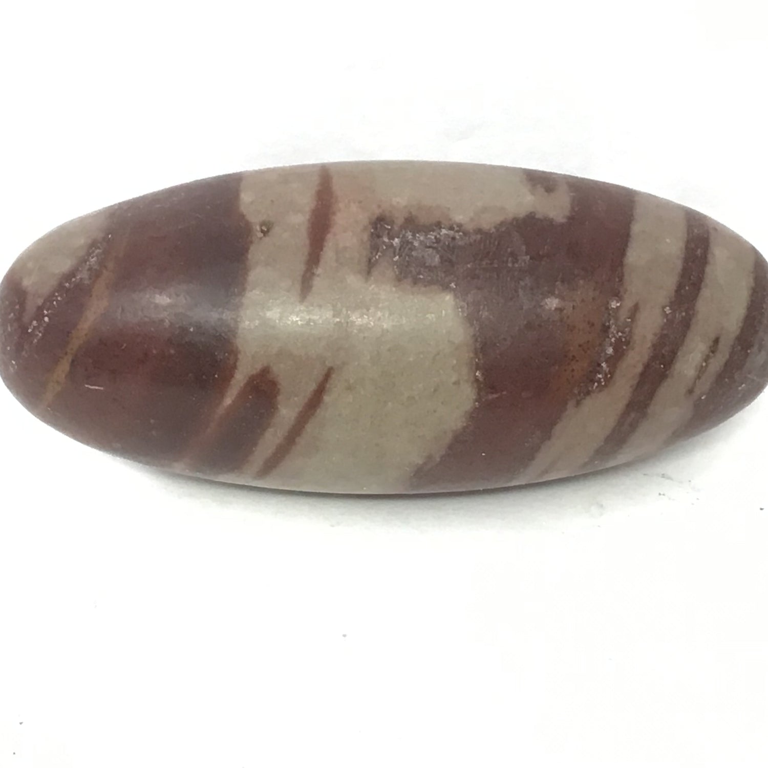 Honor sacred geometry with this 5" Shiva Lingam Stone! Sourced from India's Narmada River, this egg-shaped stone features the distinctive elongated form and natural markings revered in Hindu traditions. The smooth polish reveals warm earthy tones and unique banding patterns, while the included lucite stand provides elegant display. Shiva Lingams represent the balance of masculine and feminine energies, making them powerful tools for meditation and spiritual practice. This substantial 5-inch size makes a meaningful statement on altars, meditation spaces, or as a centerpiece celebrating ancient wisdom and energetic harmony!