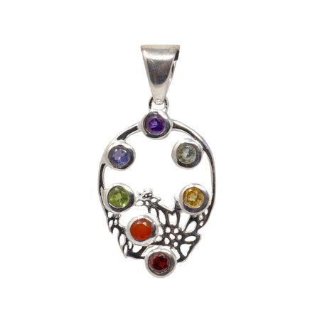Regular price $11900Unit price /UnavailableVery low stock (4 units)7 Chakra Faceted Rounds Pendant on Silver Wire Oval with Silver Wire Flower