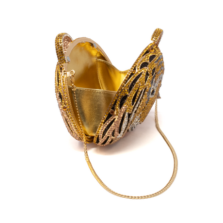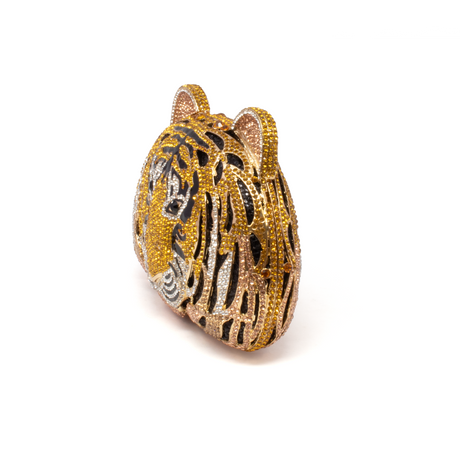 Regular price $75000Unit price /UnavailableVery low stock (1 unit)Tiger Face Crystal Purse with Chain - Yellow & Black