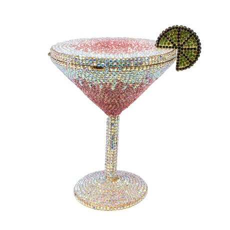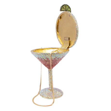 Regular price $75000Unit price /UnavailableVery low stock (1 unit)Martini Glass Crystal Purse with Chain - White, Pink & Green