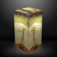 The Green Talan Onyx Luminary Pedestal is a versatile and elegant accent piece for any home. Made from Mexican Onyx, this unique pedestal features a face cut design and emits a warm and welcoming light. Perfect for illuminating any living space, it can be used as a table or floor lamp, or simply as a decorative piece. With its square shape, it effortlessly fits into any corner or side table, adding a touch of elegance to any room. Enhance your home with the stunning Green Talan Onyx Luminary Pedestal.