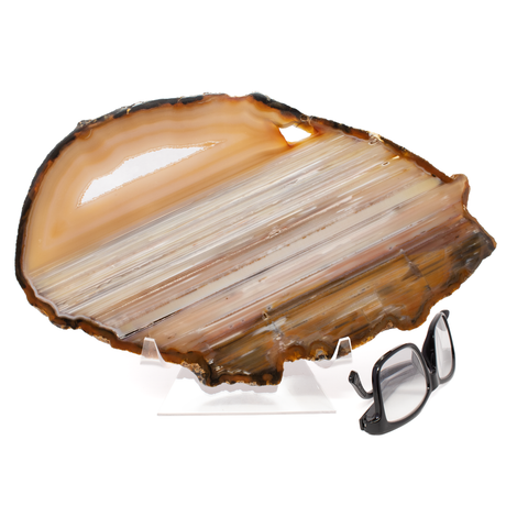Regular price $11900Unit price /UnavailableVery low stock (1 unit)Thin Agate Slice -Densely Banded Linear Pattern With Half Oval Druze Pocket On Easel Stand