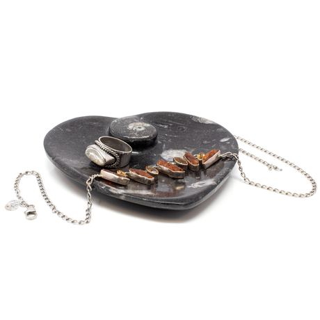 Regular price $2000Unit price /UnavailableVery low stock (1 unit)Orthoceras and Ammonite SeaBed Fossil Small Heart Dish