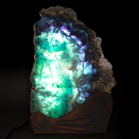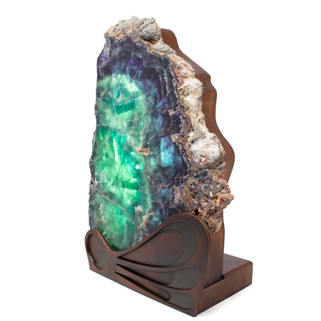 Regular price $7500Unit price /UnavailableIn stockRainbow Fluorite Slice Table Lamp with Caliche Exterior on Wave Design Stand
